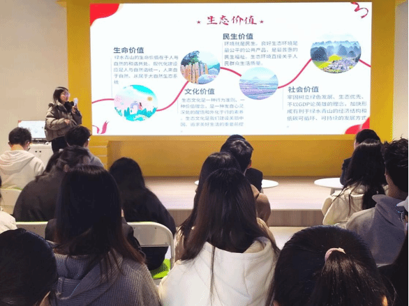 领学人母心慧结合《党政机关厉行节约反对浪费条例》,为同学们带来以“爱绿植绿护绿,共守青山绿水”为主题的党课,她全面、细致讲述了绿水青山的生命价值在于人与自然的和谐共处,同学们通过学习,进一步筑牢了“绿水青山就是金山银山”的绿色生态发展理念。