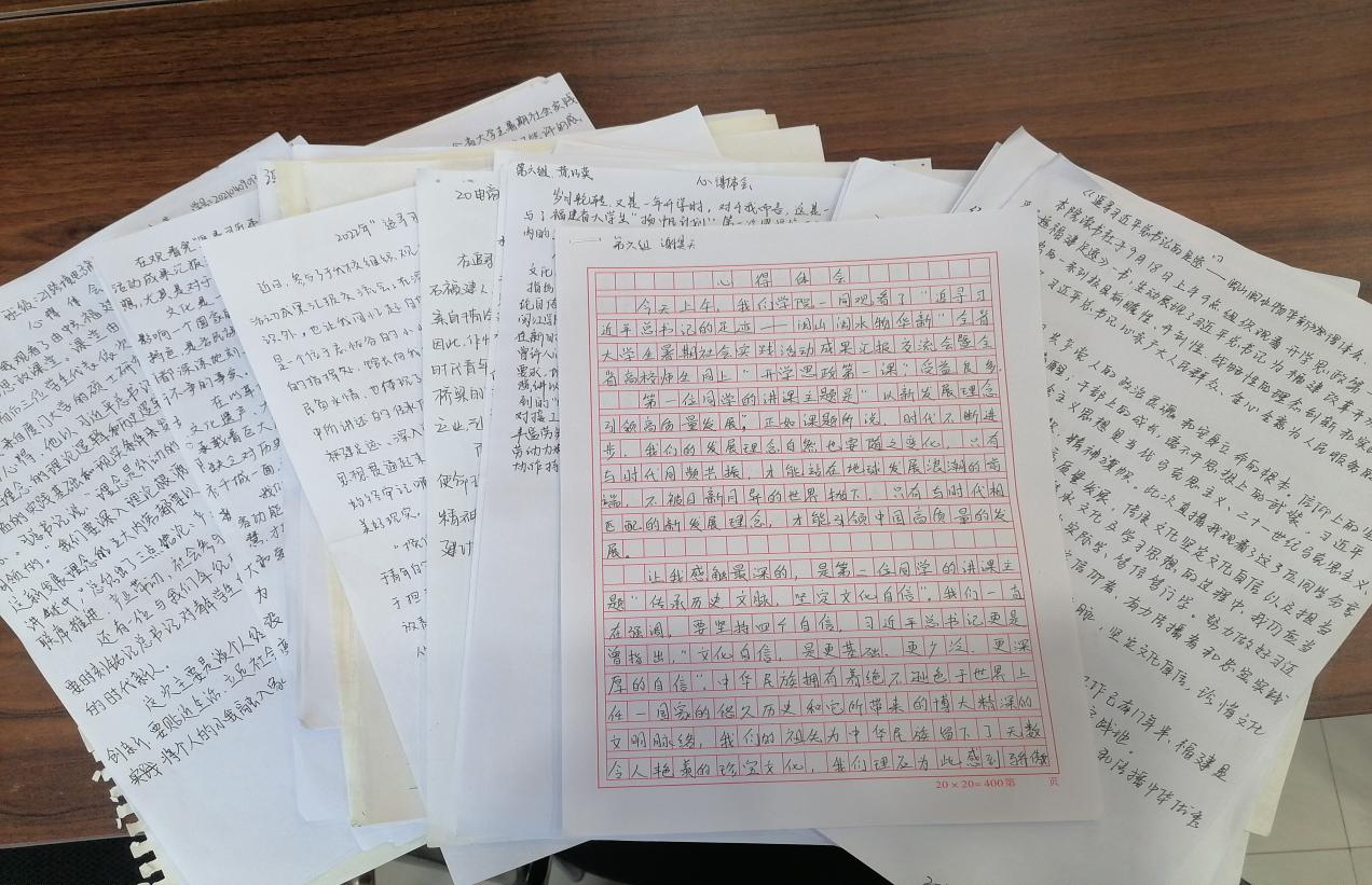 为深入贯彻落实新时代学校思想政治工作要求,9月18日上午,yl6809永利读书社在学院会议室组织全体社员观看“追寻习近平总书记的足迹--闽山闽水物华新”,全省大学生暑期社会实践活动成果汇报交流会暨全省高校师生同上“开学思政第一课”直播活动,读书社全体社员认真观看,做好笔记,撰写心得体会。