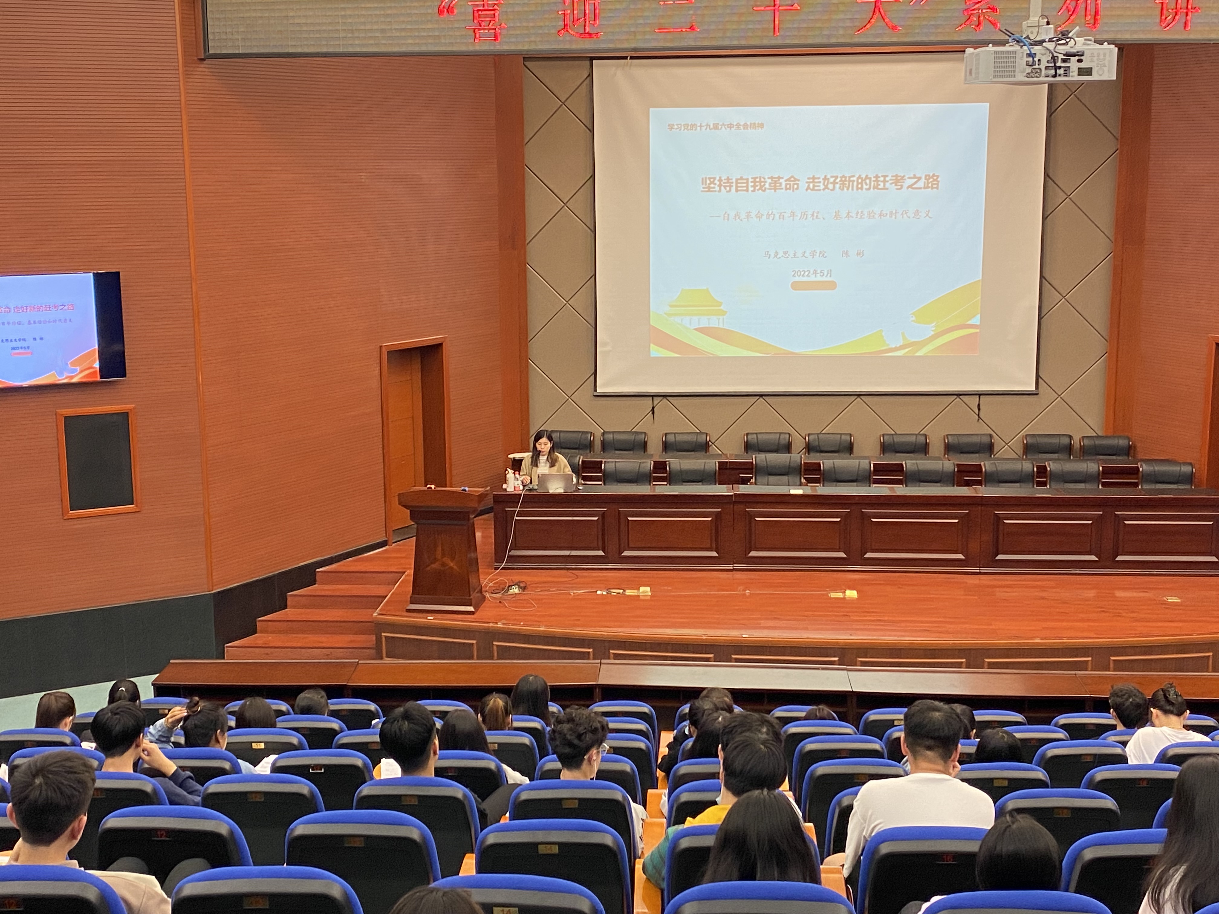 5月24日,yl6809永利习近平新时代中国特色社会主义思想读书社在学术报告厅开展“中国共产党自我革命的百年探索和时代价值”主题讲座,马克思主义学院陈彬老师应邀作此次报告,学院读书社指导老师及全体社员参加了本次讲座。