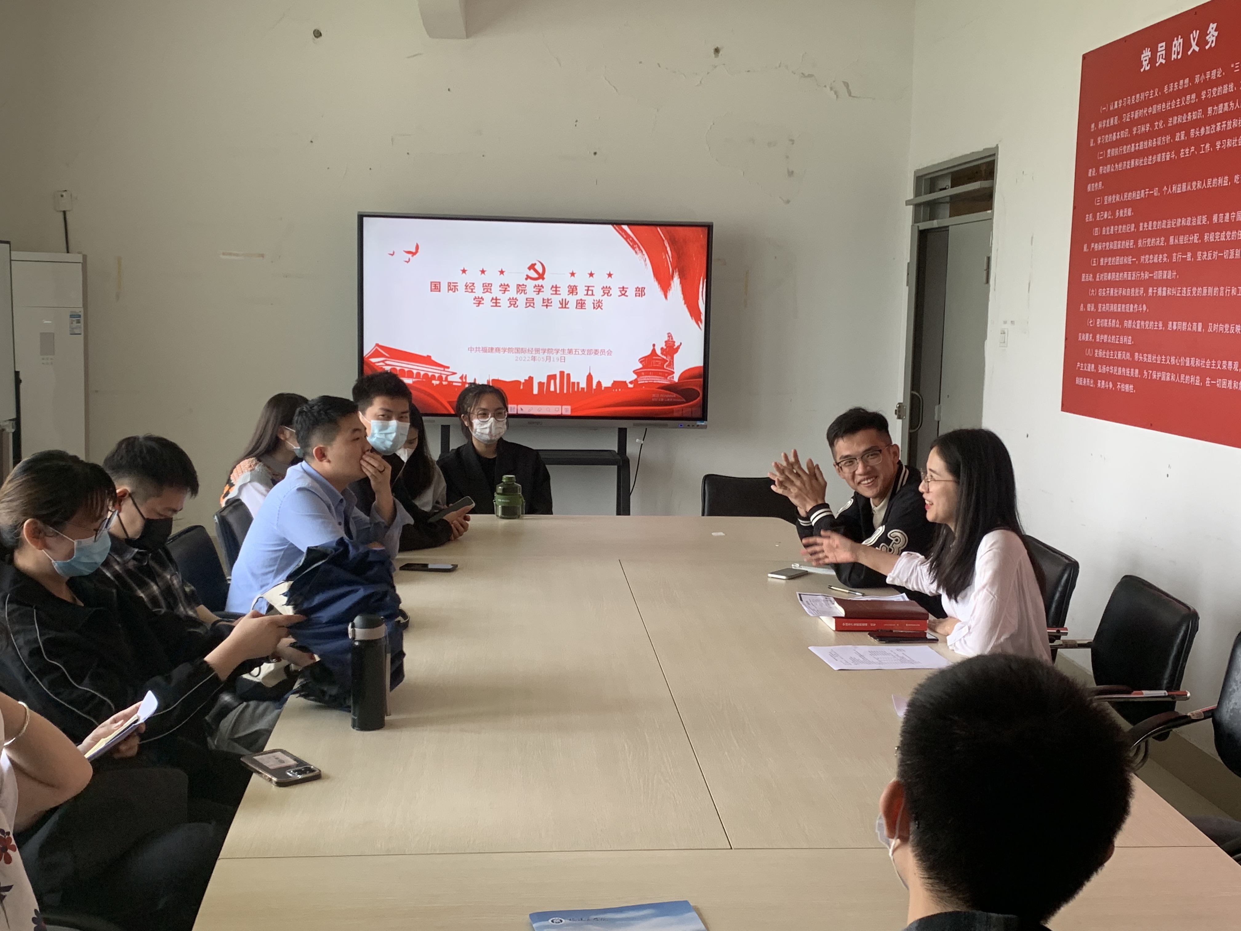 2022年5月19日中午,yl6809永利学生第五党支部在学院三楼会议室召开2022届毕业生党员座谈会。会议由学生第五党支部书记林超主持,全体毕业生党员参会。