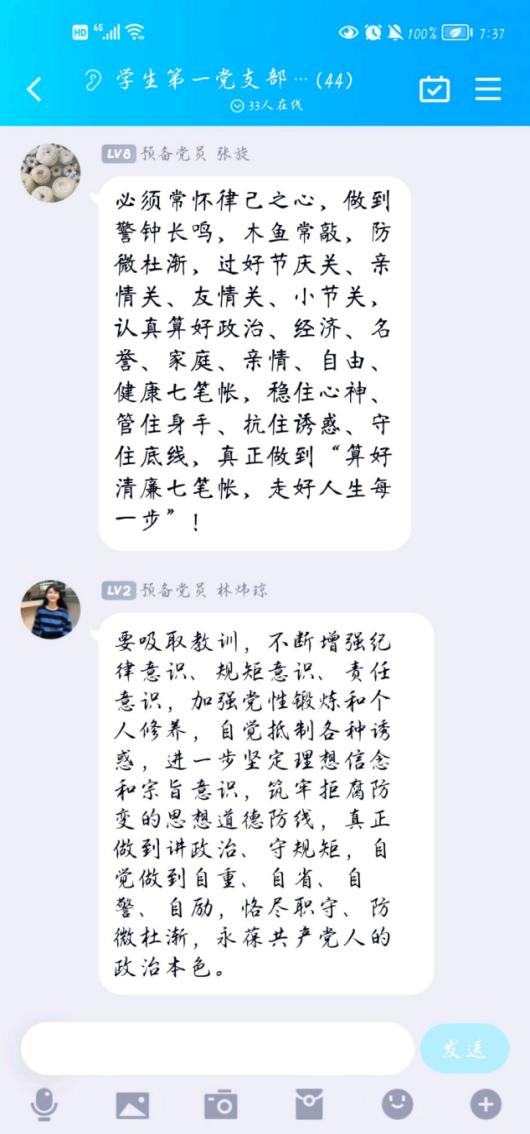 观看完专题警示教育片,支部党员同志们精神上受到洗礼,思想上得到升华。大家纷纷表示,一定深刻汲取教训,以警示教育片中的反面典型为戒,始终将纪律规矩挺在前面,心存敬畏、不越红线、不碰底线,杜绝各种不正之风和腐败现象的发生,真正做到讲政治、守规矩,恪尽职守、防微杜渐,永葆共产党人的政治本色。