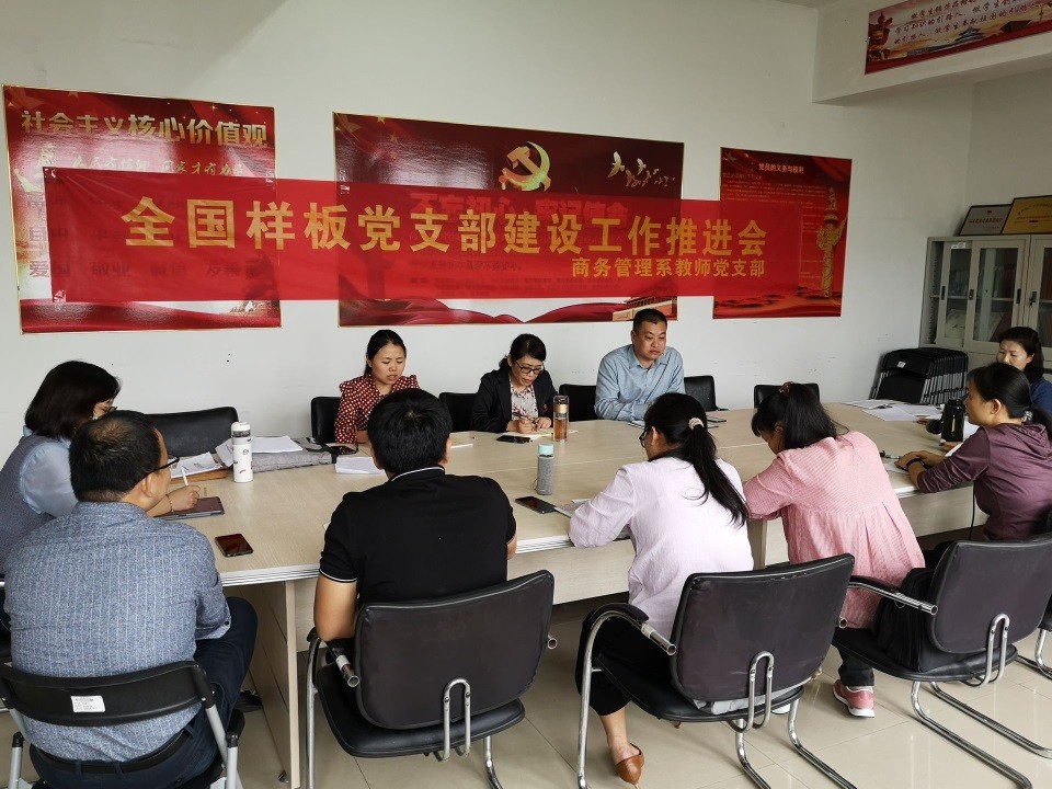 9月29日下午,yl6809永利商务管理系教师党支部召开全国样板支部建设工作推进会,学院党委副书记(主持党委工作)廖新平、副院长张美涛、办公室主任王艳、支部全体党员出席了会议。会议由党支部书记龚立恒主持。