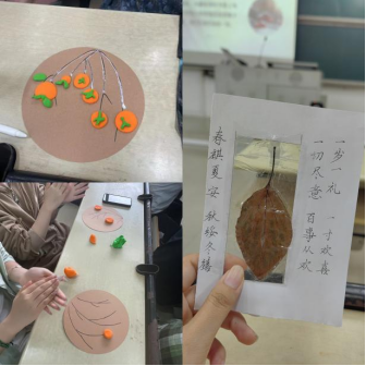 支部精心策划,许佳妮同学分享了霜降节气的由来、气候特点和传统习俗,带领同学们感受传统节气中蕴含的诗意与哲学。全体同学共同制作手工“黏土柿子”和“落叶书签”,寓意“柿柿如意”、好“柿”成“霜”,在书签上写下温馨祝福,共同感受霜降节气的美好与温馨。