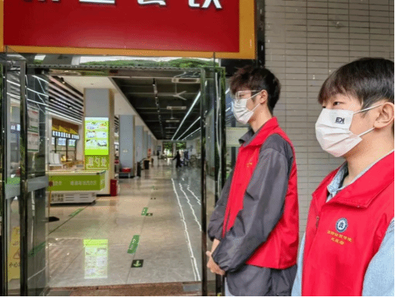 在学院“疫”线上,每一个无私奉献,不畏艰险的“红马甲”志愿者完成着一次次爱的传递。核酸检测当日,几十名青年志愿者们在篮球场集合,根据责任分工,纷纷忙碌起来。有的站在入口处引导同学们往篮球场后走,不从前穿、避免混乱;有的在等待区带领各自负责的班级,轮到这个班时,将班级从集合区带去排队;有的和总负责人更新核酸进度。志愿者们始终秉承着“奉献、友爱、互助、进步”的志愿者精神,以责任担当为笔,以青春热情为墨,在这场防疫画卷中,留下了属于他们的青春汗水,用自己的青春奋斗践行志愿者的誓言。