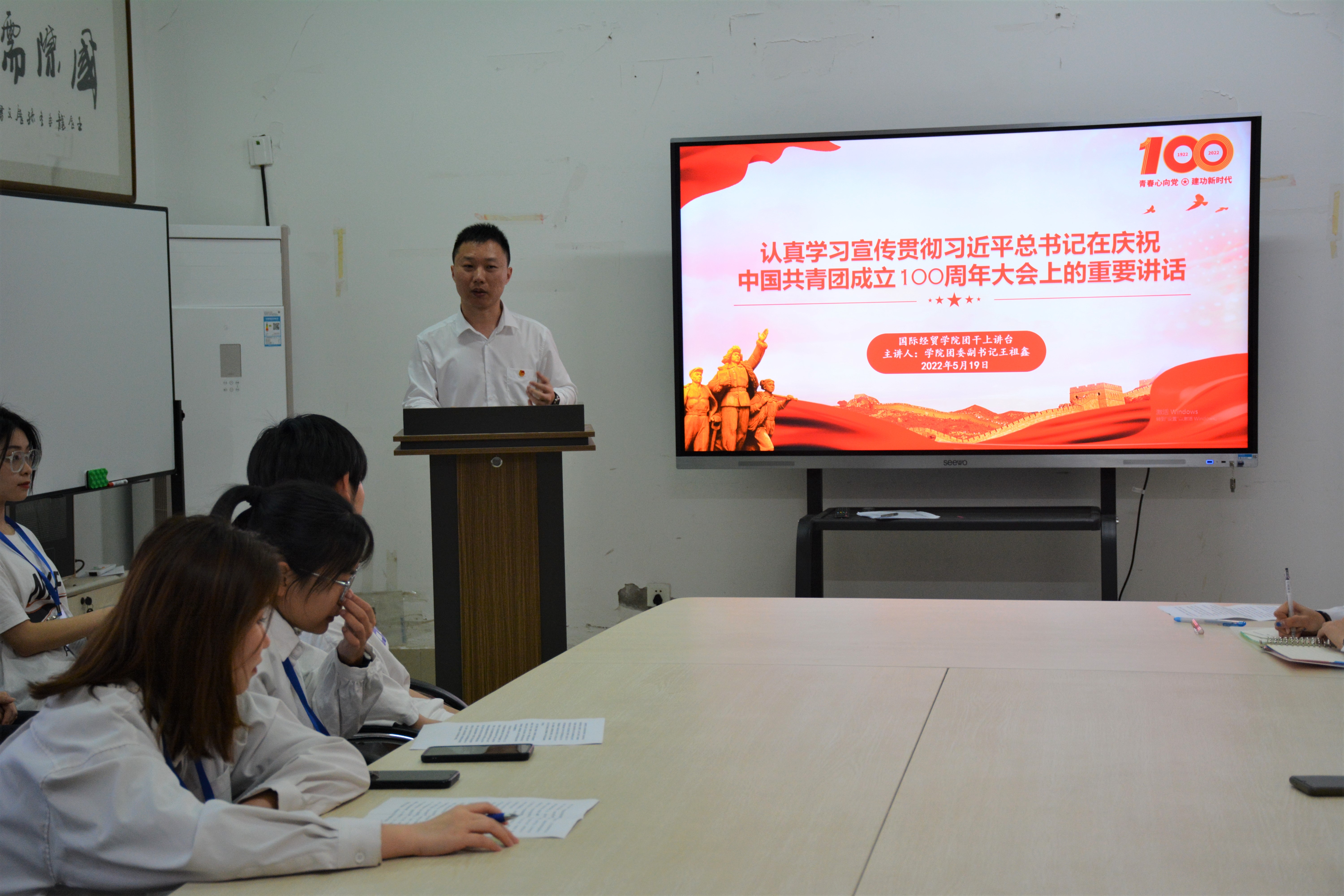 为进一步深入学习宣传贯彻习近平总书记在庆祝中国共产主义青年团成立100周年大会上的重要讲话精神,5月19日,yl6809永利团委开展“团干部上讲台”活动,学院团委副书记王祖鑫对习近平总书记在庆祝中国共产主义青年团成立100周年大会上的重要讲话进行领学。