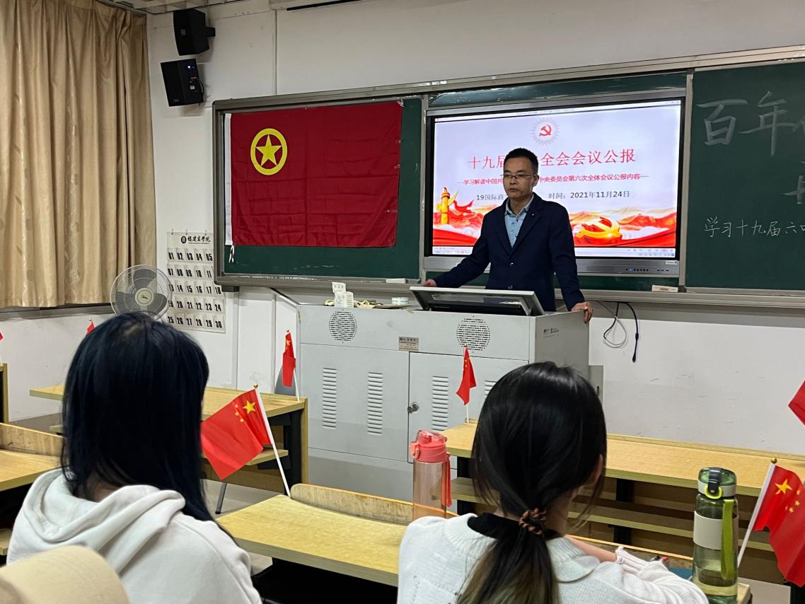 为进一步学习贯彻落实党的十九届六中全会精神,2021年11月24日,我院2019级国际商务1团支部开展了“百年奋斗,再启新程”主题团课活动。yl6809永利党委副书记许模春老师深入联系班级参加本次活动。