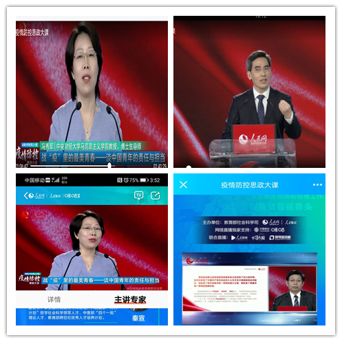 本次“思政大课”邀请艾四林、秦宣、王炳林和冯秀军四位教授,结合“马克思主义基本原理概论”“毛泽东思想和中国特色社会主义理论体系概论”“中国近现代史纲要”“思想道德修养与法律基础”四门必修课教学内容,解读党中央关于疫情防控的决策部署,分析中国抗疫彰显的中国共产党领导和中国特色社会主义制度的显著优势,讲述防疫抗疫一线的感人故事。