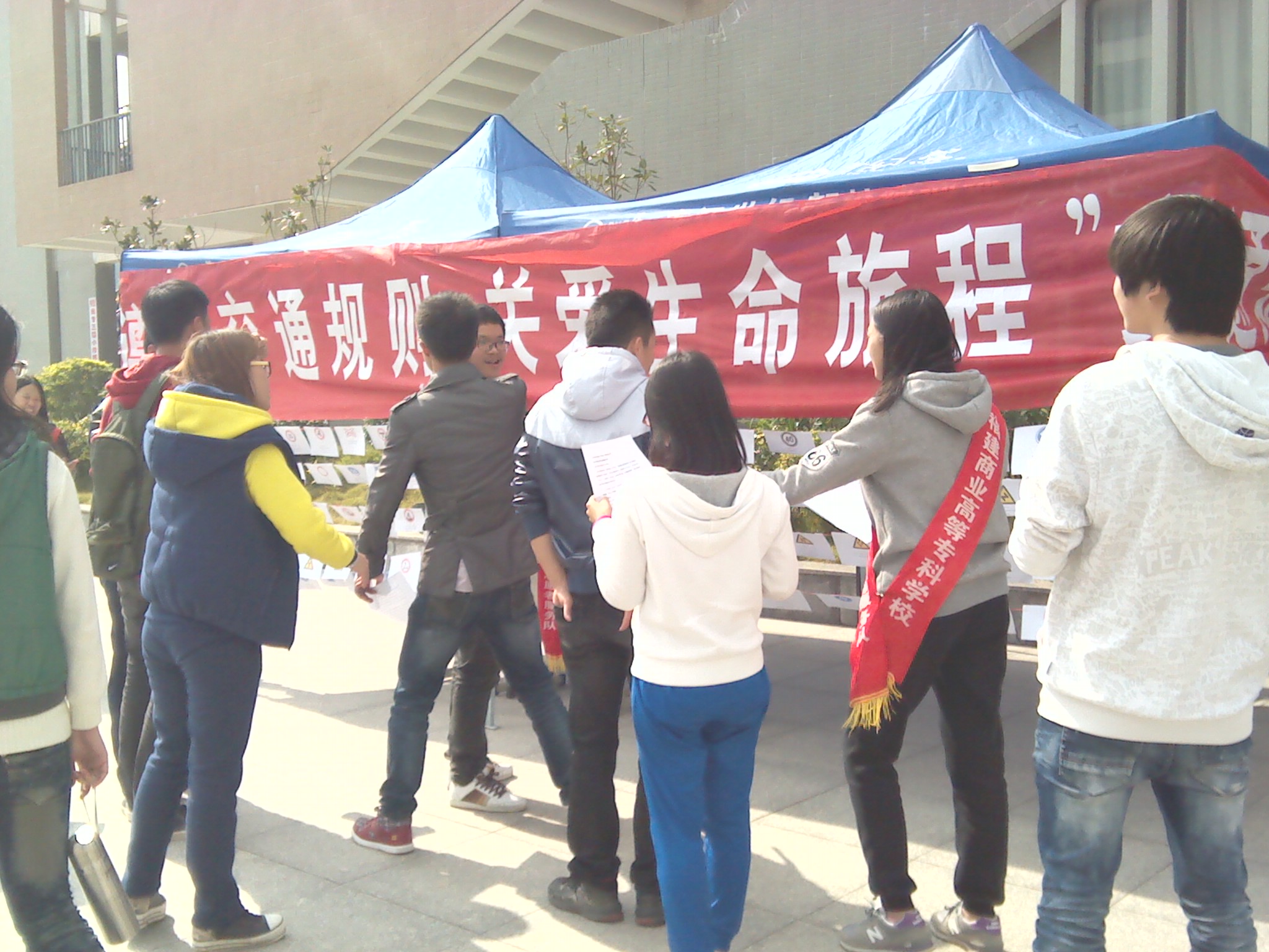 自改革开放以来,我国旅游业迅速发展,社会上出现了旅游热潮。随着元旦、春节假期的临近,旅游人数更是剧增,但从整体来看,我国公民的整体道德素质与快速发展的旅游业还不相适应。国内的景区常常惨遭一些不文明行为的破坏,反映我国公民整体道德素质的缺失,特别是国人境外出游时,例如乱刻乱画的报道屡见不鲜,“中国式旅游”已成为外国人的笑点,这不仅体现了自身修养问题,更是损害了我国“礼仪之邦”的形象。为此经济贸易系青年志愿者服务队于2013年12年20日—21日举办了以“倡导旅游新风尚,共创旅游新文明”为主题的活动。