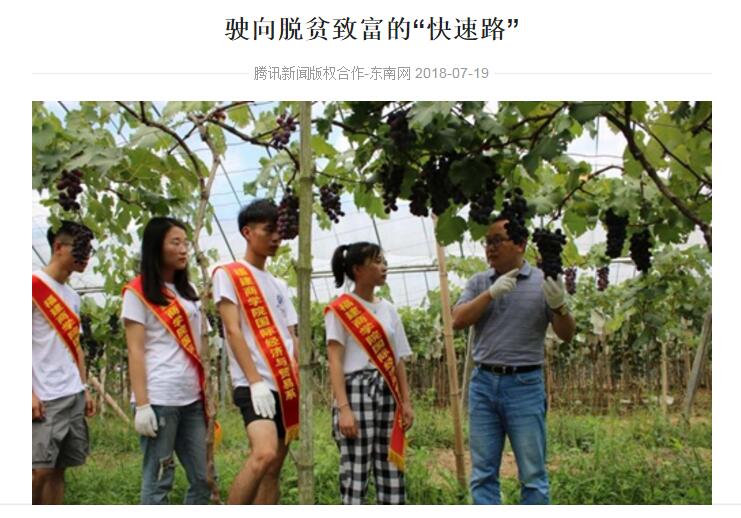 此次建瓯之行同时还受到网页(腾讯新闻、东南网讯等)的报道,报道表示,建瓯梅村村空气里弥漫着浓郁的葡萄香,所产的葡萄果肉饱满,清甜可口。还表示在永利集团yl6809国际经济与贸易系师生的帮助下,该地贫困户的生产、农产品销售与市场直接架起精准扶贫的桥梁,为当地贫困户实现稳定脱贫提供保障。