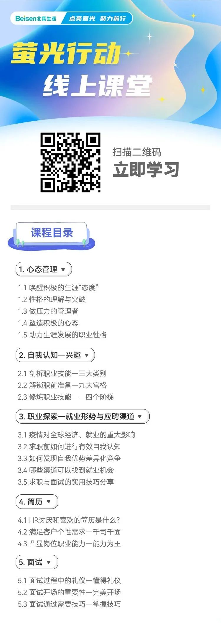 现阶段,由于全国新冠疫情多点散发,各地对疫情的防控要求也越来越严格,从而给众多应届毕业生就业带来挑战,针对当下情况,江西财经大学招生就业处、大学生职业发展促进中心联合北森生涯开展萤光行动,助力我校学生就业。