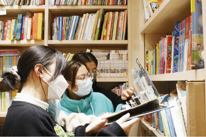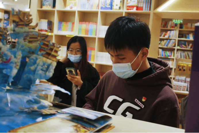 同学们观摩图书展示馆