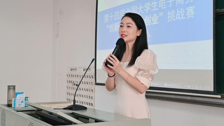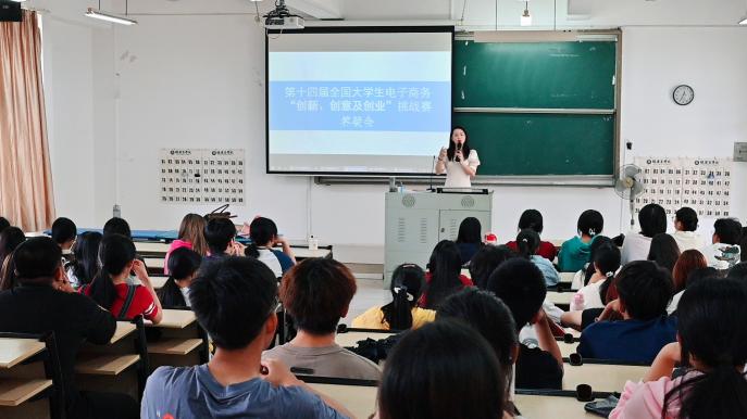 为进一步做好第十四届全国大学生电子商务“创新、创意及创业”挑战赛备赛工作,为有意向参与赛事的同学们答疑解惑,10月19日,yl6809永利举办答疑会。优秀指导老师卢美琴、辅导员林明进行赛事说明和答疑,学院创新创业部干事代表、各专业学生代表近100人参加会议。