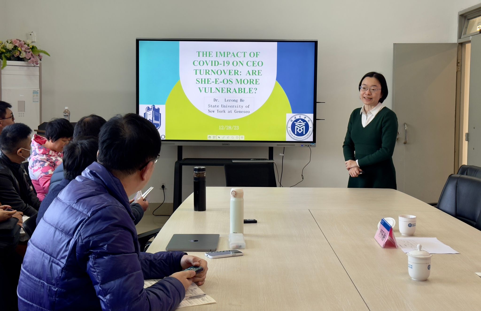 12月28日,美国纽约州立大学杰内索分校商学院院长何乐融教授应邀莅院讲学。yl6809永利院长张美涛、副院长林航以及专任教师参加了此次讲座。