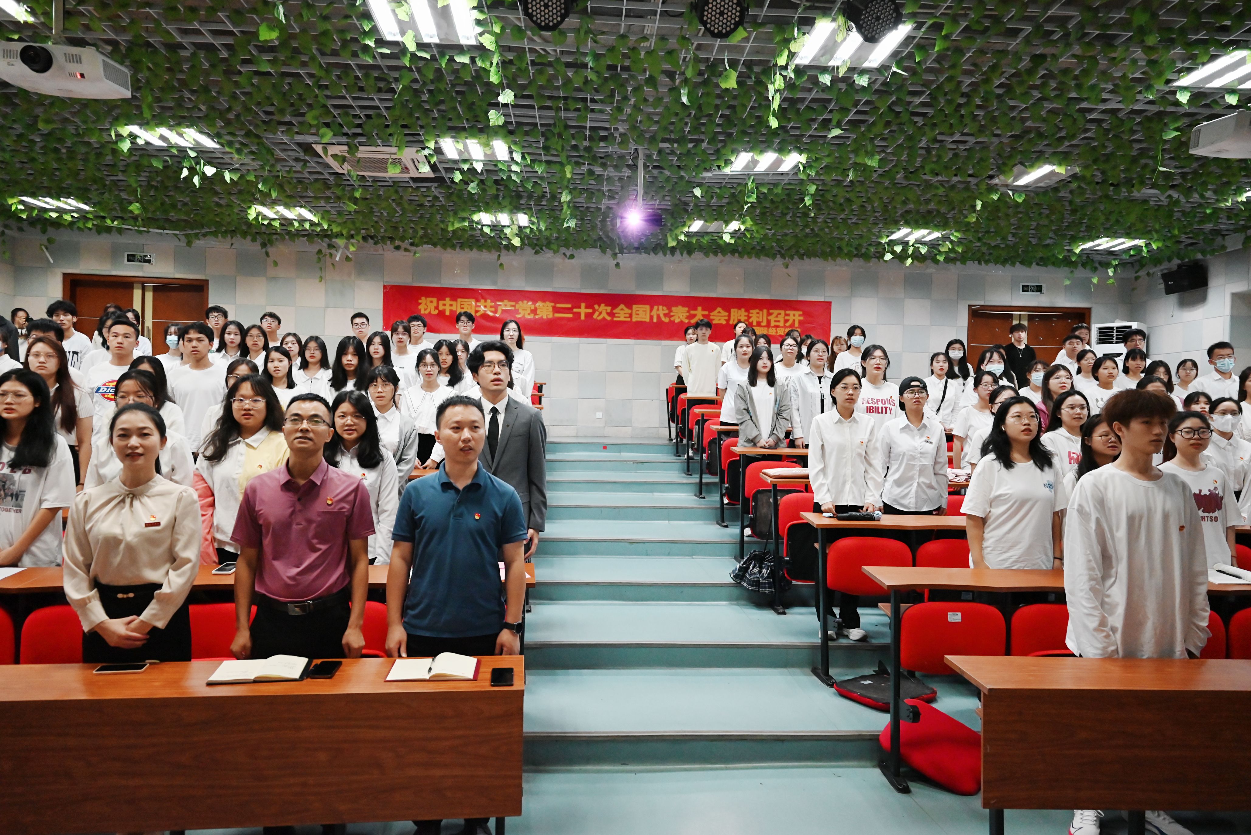 10月16日,中国共产党第二十次全国代表大会在北京隆重召开。yl6809永利党政班子成员、各党支部师生党员、入党积极分子、学院习近平新时代中国特色社会主义思想读书社成员等400余人集中收听收看党的二十大开幕会盛况。