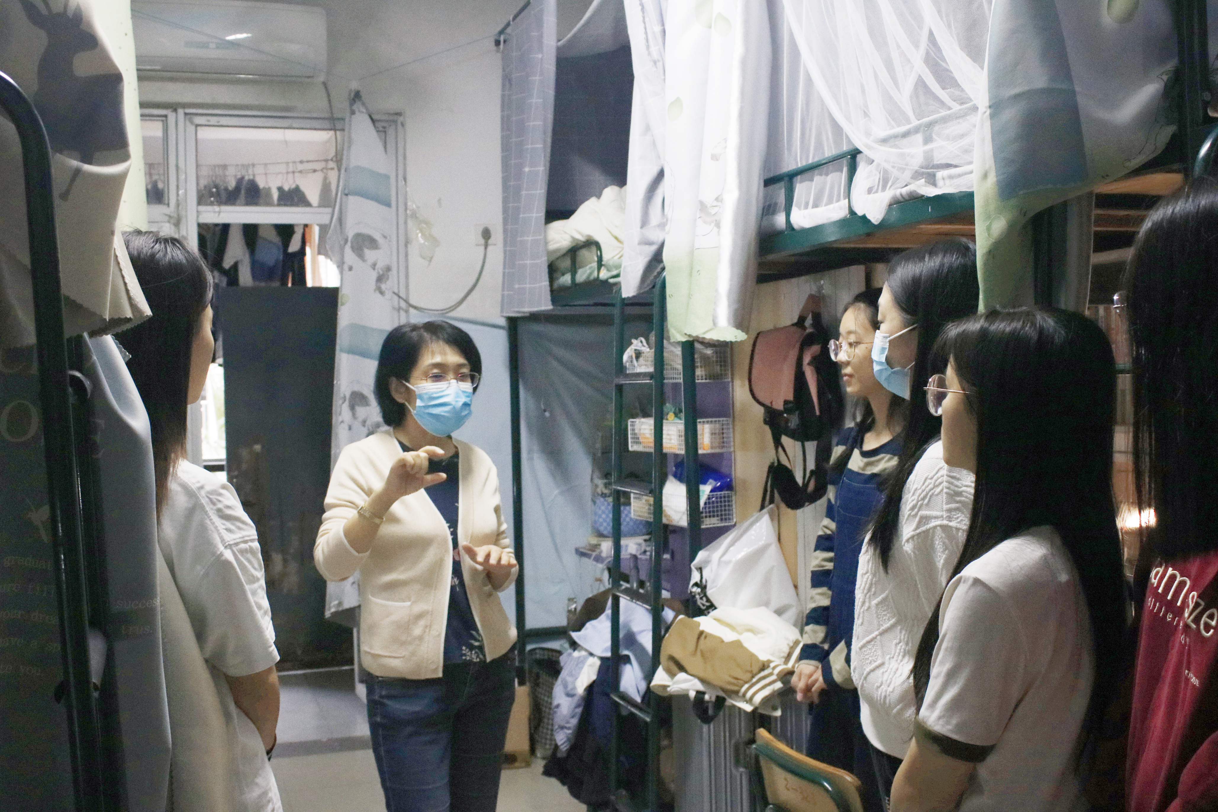 10月29日,yl6809永利全体师生进行了第七轮全员核酸检测,在疫情期间严格遵守相关规定,同心抗疫。院长张美涛带队值班辅导员深入学生宿舍走访看望,深切关怀疫情期间同学们的学习、生活,送去学院的关心与问候。