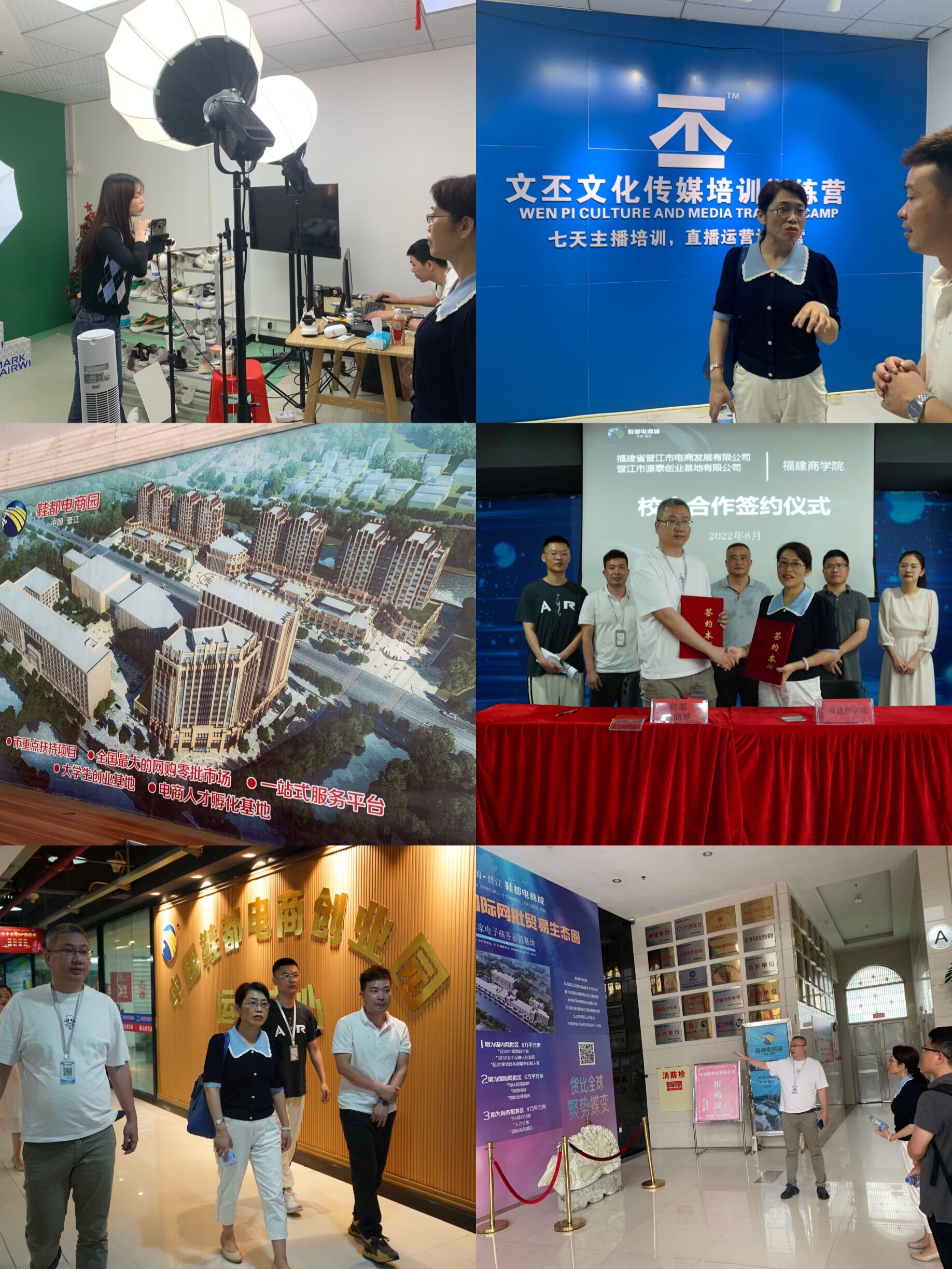 调研中,一行人参观了电商城运营中心展厅,详细了解晋江鞋都电商城的基本情况。院领导向企业代表介绍了学校的基本情况、学科特色和人才培养方案。鞋都电商城总经理陈建恩对学校人才培养成果给予了高度的评价,表示期待与我院携手共同培养一批高素质高技术的电商实战人才,服务地方经济发展。园区企业代表文丕文化传媒有限公司总经理黄斌希望通过校企合作实现资源共享、优势互补。校企双方签署《永利集团yl6809学生校外实践教学基地协议书》,双方以培养学生实践能力为目的,建立稳定、长期、全面的合作关系。
