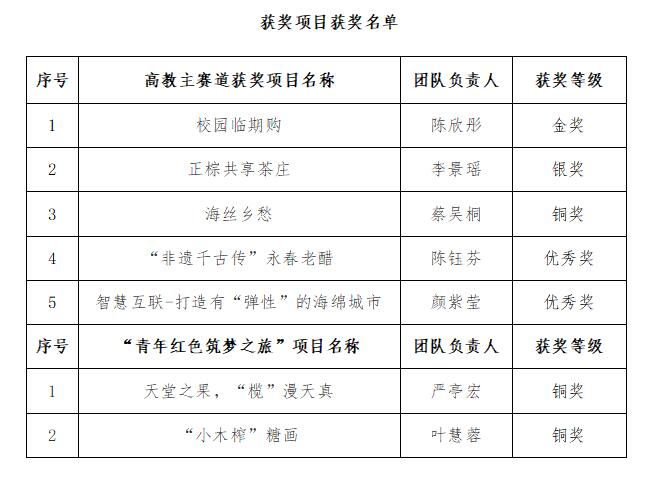 近日,第八届福建省“互联网+”大学生创新创业大赛永利集团yl6809选拔赛落下帷幕。yl6809永利代表队荣获金奖1项、银奖1项、铜奖3项、优秀奖2项。周金铁荣获优秀指导教师,学院荣获全校唯一一个优秀组织奖单位。