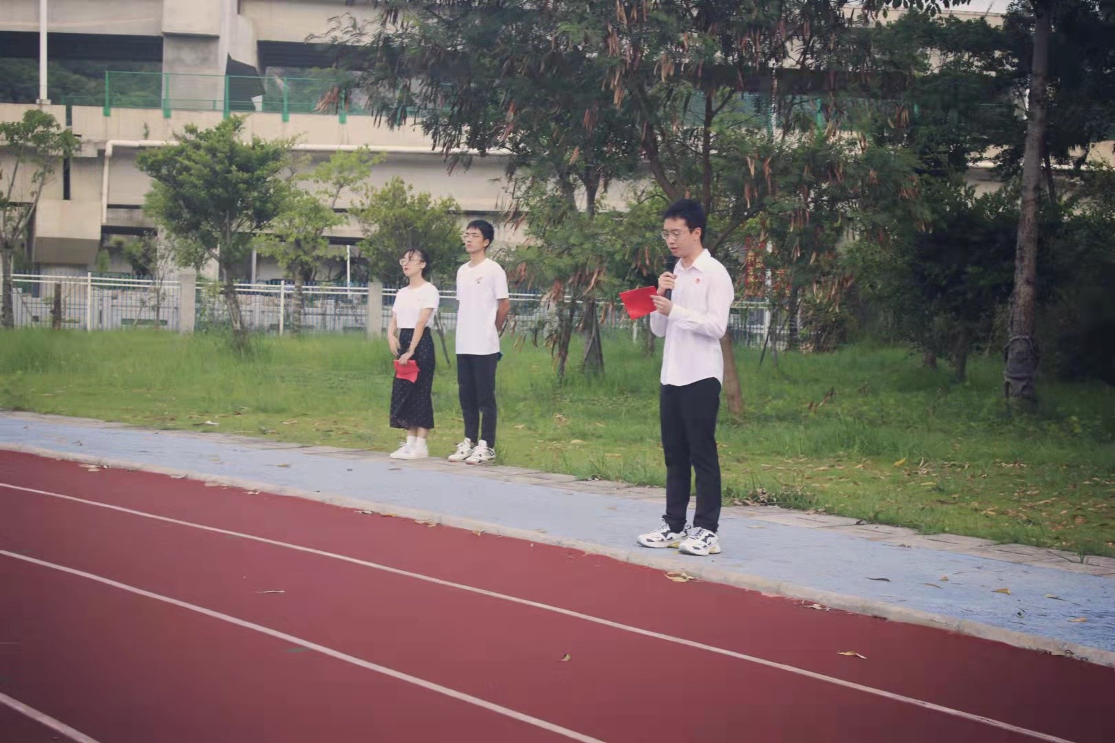 七点整,升旗仪式正式开始。全体肃静,国歌响起,怀着激动的心情注目着冉冉升起的国旗。在耀眼红旗的映照下,19国际经济贸易1班邓林堃同学发表了《以青春之我,建青春之国》国旗下的演讲,呼吁广大青年,要以青春之我,扎实学识,勇于奋斗,投入到社会主义现代化建设新征程中。