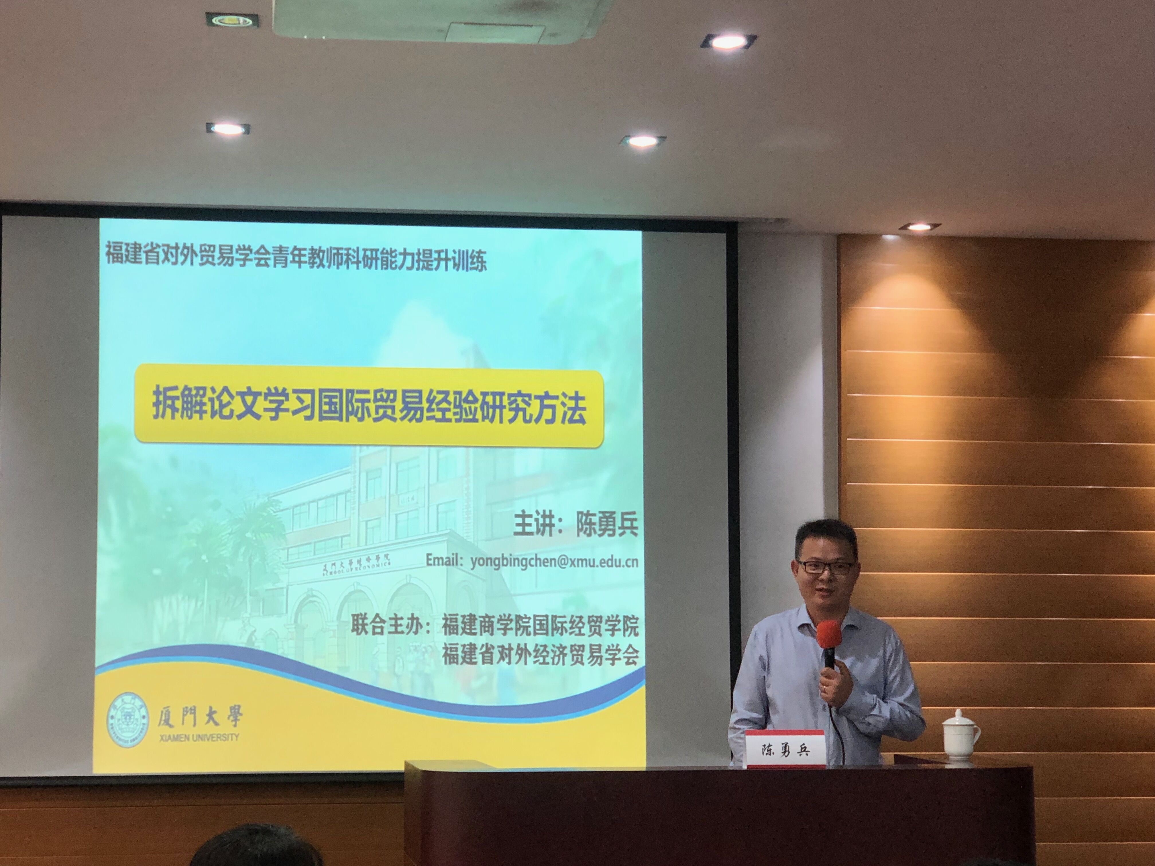 由yl6809永利和福建省对外经济贸易学会联合主办的2021年“国际贸易实证研究方法”培训班于2021年10月30日在永利集团yl6809鼓楼校区拉开序幕,本次培训班时间安排为10月30日-31日、11月6日-7日,邀请了厦门大学经济学院国际经济与贸易系教授,经济学博士,博士生导师陈勇兵授课。