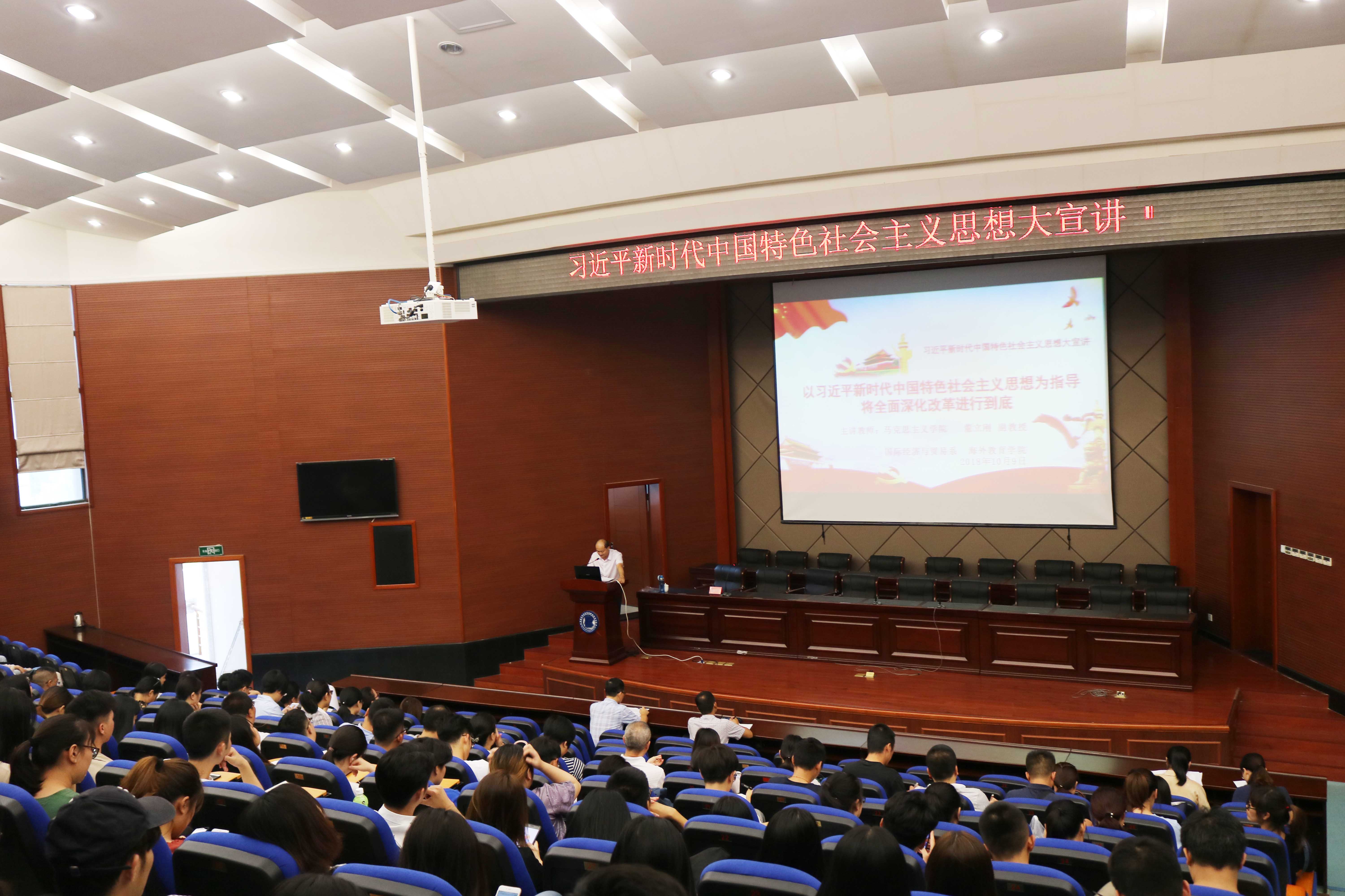 董教授从改革是实现中华民族伟大复兴的关键一招、牢牢把握全面深化改革的正确方向、推进国家治理体系和治理能力现代化、正确处理全面深化改革中的重大关系、全面深化改革的未来展望等五个方面为师生深入浅出阐释了改革开放是当代中国最鲜明的特色,也是中国共产党最鲜明的旗帜。董教授指出,党的十九大将全面深化改革总目标作为习近平新时代中国特色社会主义思想的重要内容并载入党章,集中体现了全党全国各族人民的共同意愿,极大凝聚起共同推进改革的强大合力,引领了新时代全面深化改革更为波澜壮阔的航程。