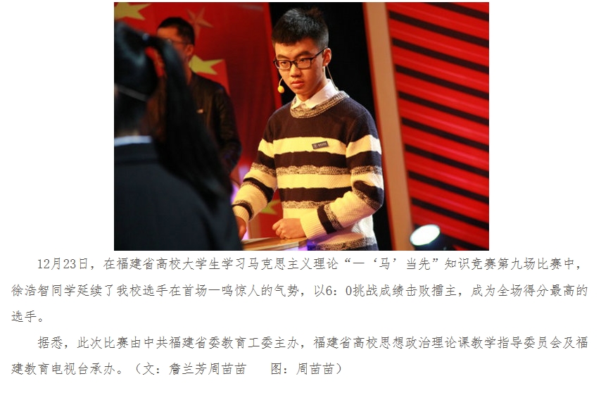 经贸系学生徐浩智在省高校大学生学习马克思主义理论“一‘马’当先”知识竞赛中鼓舞人心-yl6809永利