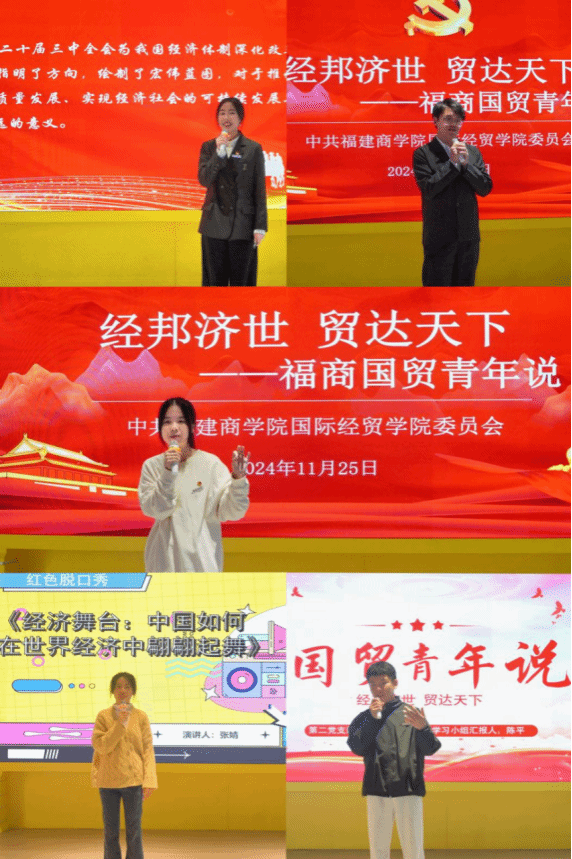 为深入学习贯彻党的二十届三中全会精神,学习全会关于推动经济体制改革、对外开放等方面内容,11月25日,yl6809永利举办“经邦济世 贸达天下——国贸青年说”红色脱口秀。